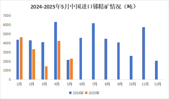 一、5月我國銻精礦進(jìn)口量環(huán)比下降
